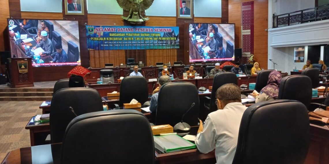 SUMBARBERKABAR.COM – Untuk menyempurnakan muatan rancangan peraturan daerah (Ranperda) tentang Pemajuan Kebudayaan Daerah Cagar Budaya dan Permuseuman (PKDCBP), Komisi V DPRD Provinsi Sumatera Barat (Sumbar) menggelar seminar, Senin, (11/9).