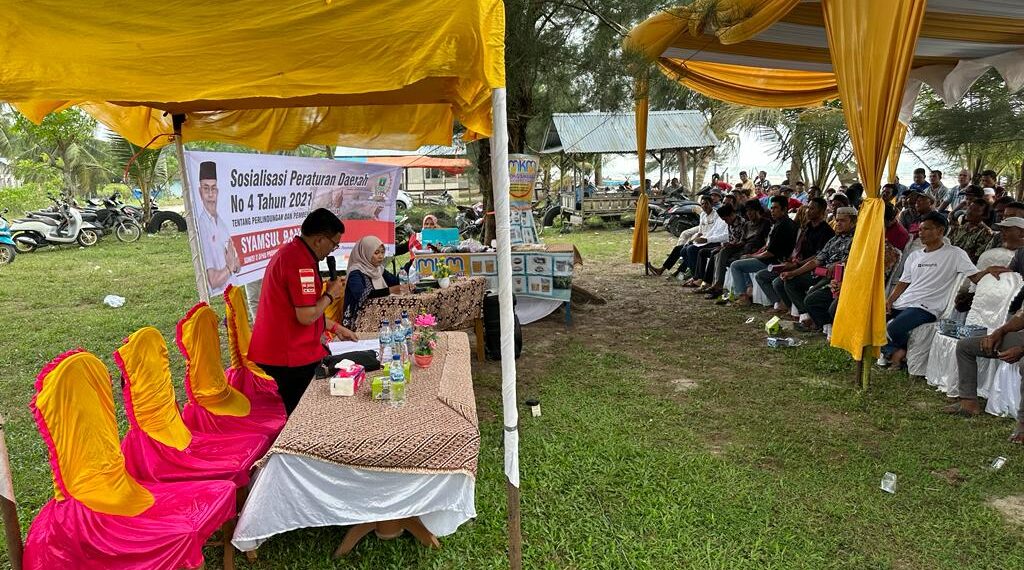 SUMBARBERKABAR.COM – Anggota DPRD Sumatera Barat dari fraksi PDI-P, daerah pemilihan Pasaman dan Pasaman Barat, Syamsul Bahri melakukan sosialisasi Peraturan Daerah (Perda) nomor 4 Tahun 2021 Tentang Perlindungan dan Pemberdayaan Nelayan di Jorong Sikabau, Nagari Ranah Koto Tinggi, Kecamatan Koto Balingka, Kabupaten Pasaman Barat, Sabtu (9/12/2023).