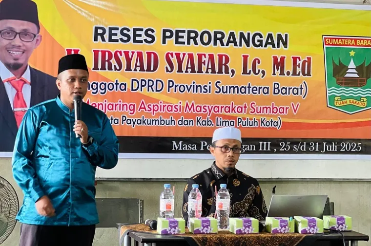 sumbarberkabar.com – Anggota DPRD Provinsi Sumatera Barat, Irsyad Syafar menyerap beragam aspirasi masyarakat saat menggelar reses perseorangan masa sidang ketiga Tahun 2025-2026, Sabtu (26/7) di SD IT AR Risalah, Nagari Simalanggang, Kabupaten Limapuluh Kota.
