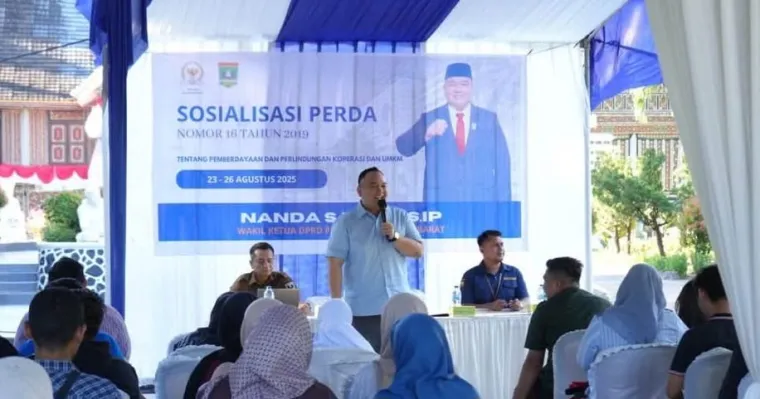 sumbarberkabar.com- Wakil Ketua DPRD Provinsi Sumatera Barat, Nanda Satria melaksanakan kegiatan Sosialisasi Peraturan Daerah (Perda) Nomor 16 Tahun 2019 tentang Pemberdayaan dan Perlindungan Koperasi dan Usaha Mikro, Kecil, dan Menengah (UMKM) di Daerah Pemilihan Sumbar I Kota Padang, Senin (25/8).
