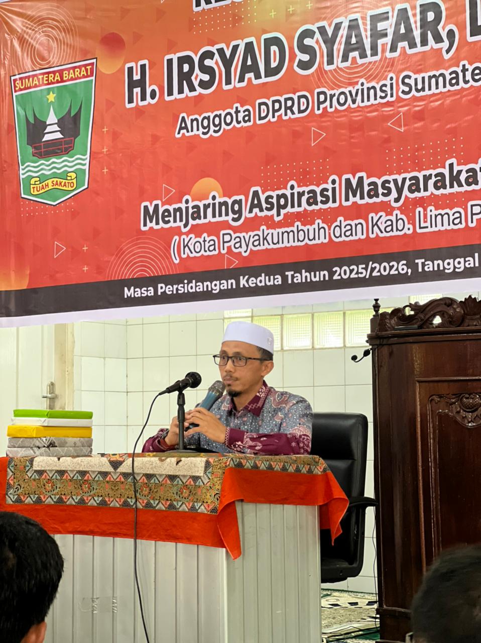 PAYAKUMBUH — Ratusan warga Padang Tiakar Hilir memadati Masjid Darussalam, Kecamatan Payakumbuh Timur, Kota Payakumbuh, saat Anggota DPRD Provinsi Sumatera Barat, Irsyad Safar, menggelar reses perorangan, Senin (2/2/2026) pagi. Antusiasme warga terlihat dari beragam aspirasi yang disampaikan langsung, mulai dari sektor pendidikan, infrastruktur, hingga kesejahteraan sosial.